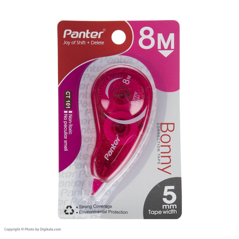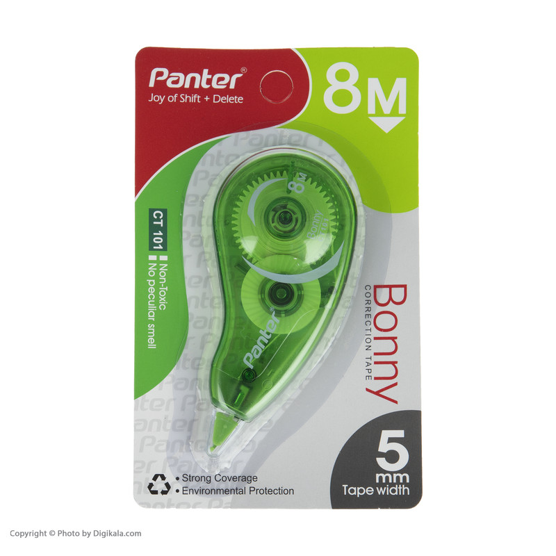 غلط گیر نواری پنتر مدل Bonnyیکی از محبوبترین و کاربردیترین لوازم تحریر دیجیکالاست. این محصول در رنگهای مشکی، آبی، سبز، زرد و ... عرضه میشود و بدنه سبک، شفاف و پلاستیکی دارد. غلط گیر نواری پنتر در ابعاد 90x40x15 میلیمتر و با زاویه استفاده 45 درجه و 90 درجه طراحی شدهاست. در ادامه با مشخصات فنی این محصول کاربردی بیشتر آشنا میشویم.